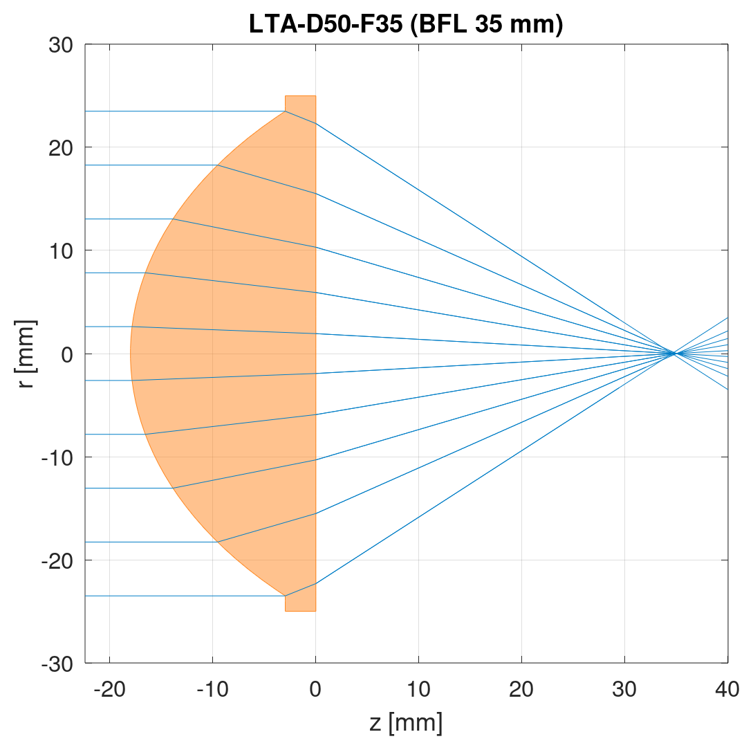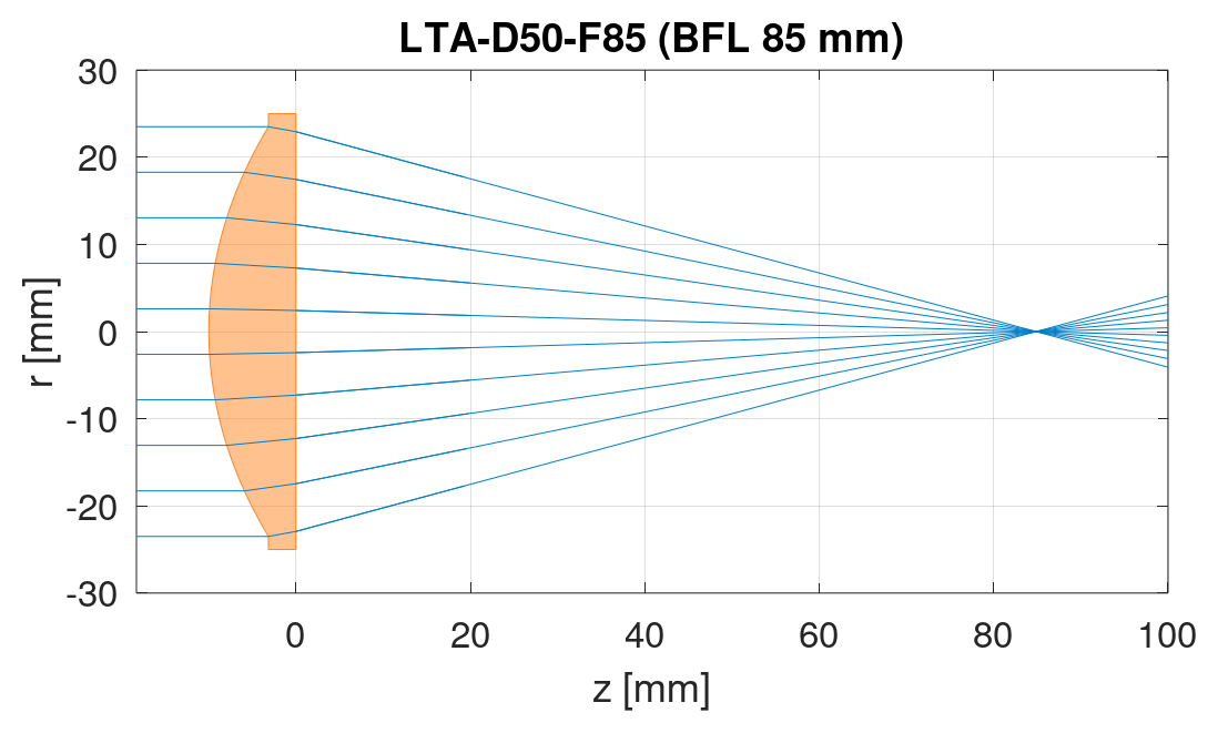For measurements with a high spatial resolution we recommend the combination of two LTA-D25.4-F10 in a pinhole setup.
