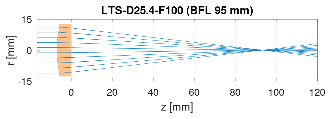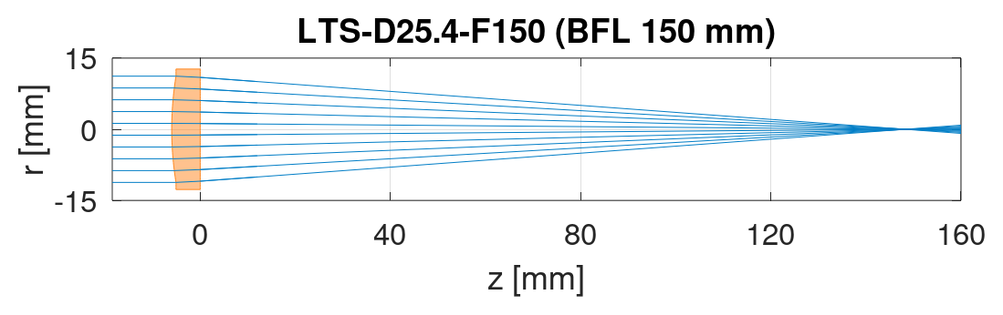 The transmitted THz beam has to be collimated with an additional lens. Therefore we recommend our TPX lens LTA-D25.4-F32.5.